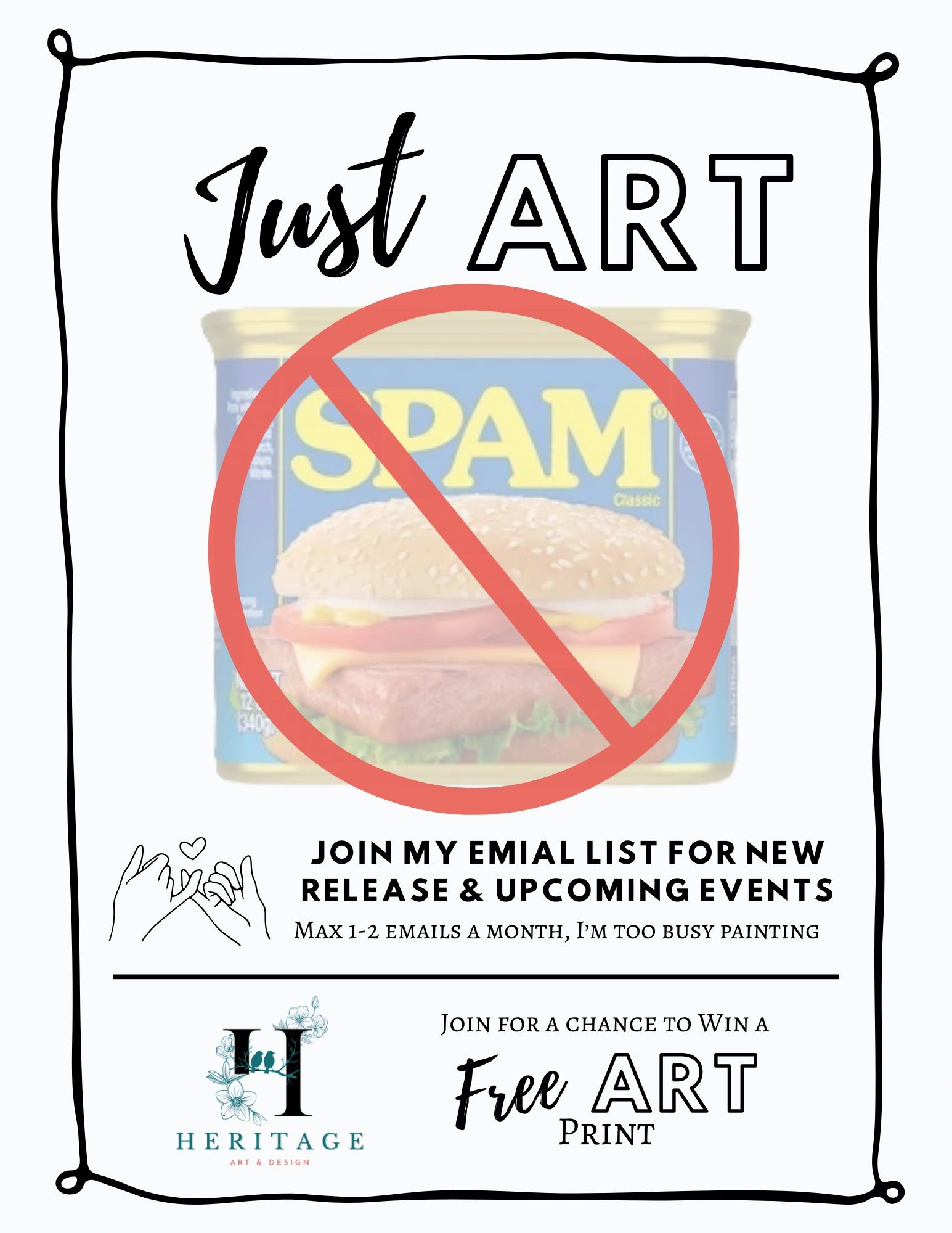 Hey there! Iif you’d like to stay in the loop on new artwork, upcoming shows, or fun creative happenings, drop your name and email below. I promise no spam, no daily inbox clutter — just the good stuff: fresh art, event invites, and maybe a behind-the-scenes peek now and then.
